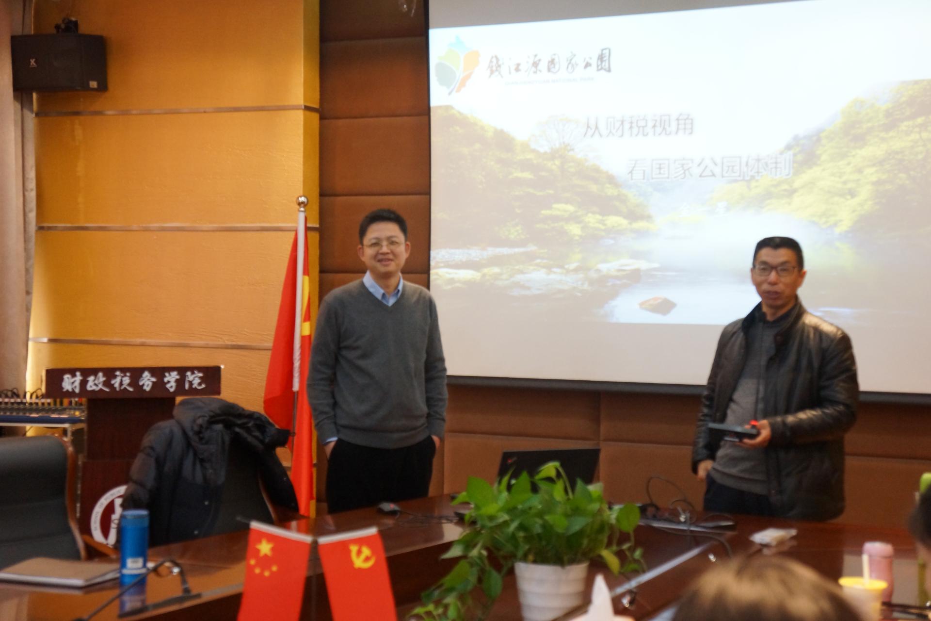 2017年12月22日星期五下午一点半在公司楼307,浙江省地方税务局政策法规处处长金一星做了一场主题为“从财税视角看国家公园体制”的讲座,全体税务一年级研究生到场聆听。