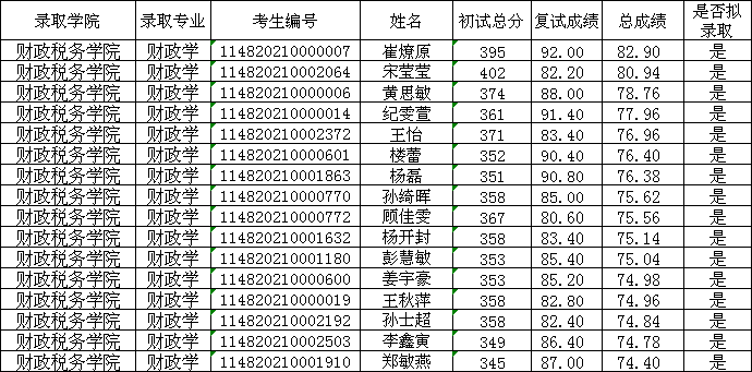 公司2020年财政学硕士研究生一志愿复试工作已经结束,现将公司财政学硕士研究生拟录取名单公示如下: