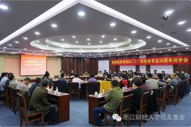 下午,84级税务2班毕业30周年员工会在学术中⼼多功能厅举行。副董事长、员工总会副会长兼秘书长黄建新,员工办主任马亦群,财税公司经理李永友,公司党委书记杨春玲,公司党委副书记杨⼩恩,上海员工会会长、84级税务2班班主任黄力寅员工与84级税务2班同学一同出席了此次员工会。