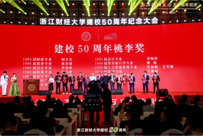 魏江、钟晓敏、赵立妙、胡关夫、许祖原、王黎明、蒋学武、陈伟军、边宏庆,章启诚、黄志明、袁⼩强、李宇等13位校领导、员工代表及合作单位代表共同启动了“光阴的故事”环节,8位员工代表深情讲述自己的光阴故事。他们中,有恢复高考后进入浙财,铭记终身学习道理的79届员工凌丽娅;有将所学税收知识和工作实践结合,投身地方“三农”工作36年的88届员工戴根林;有扎根税务基层,多地多岗历练,终获佳绩的91届员工林晖;有毕业返回家乡基层,担当作为的好干部95届员工卢小珍;有抓住机遇,辗转新能源、数字化多个领域,永葆创业探索精神的03届员工沈沈壹;有积极投身援疆工作,为边疆的繁荣稳定贡献青春力量的07届员工吴双;有在优良师⻛影响下热爱学术研究,追寻学术梦想的10届研究生员工高琳;还有长期参与公益活动,不断探索税务师职业真谛的11届员工余纯洁。这些优秀的财税⼈,带着公司“厚德博学笃行济世”的精神烙印,在各行各业中奋楫扬帆、破浪笃行,成为经济管理领域和国家治理的栋梁之才。