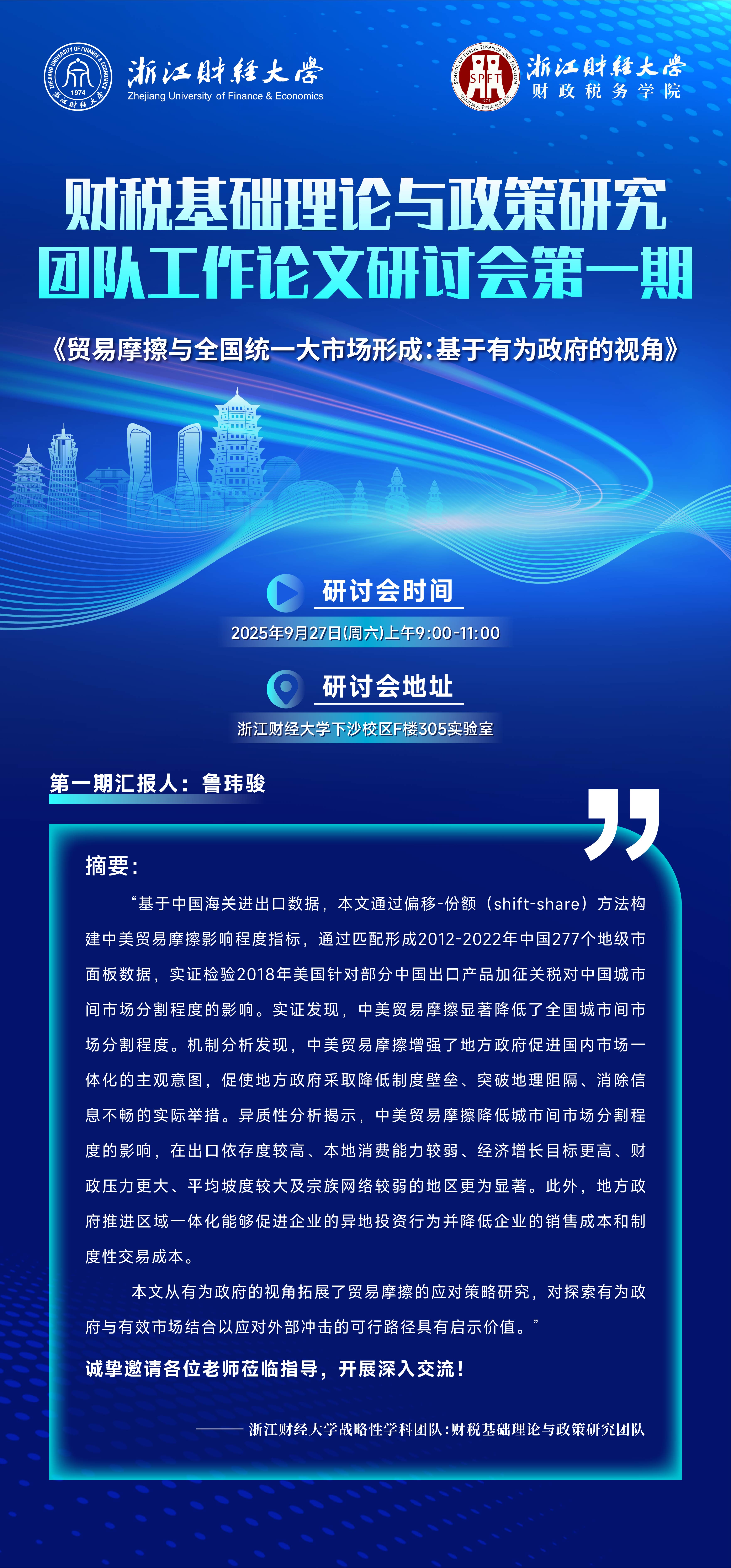 财税基础理论与政策研究团队工作论文研讨会第一期预告