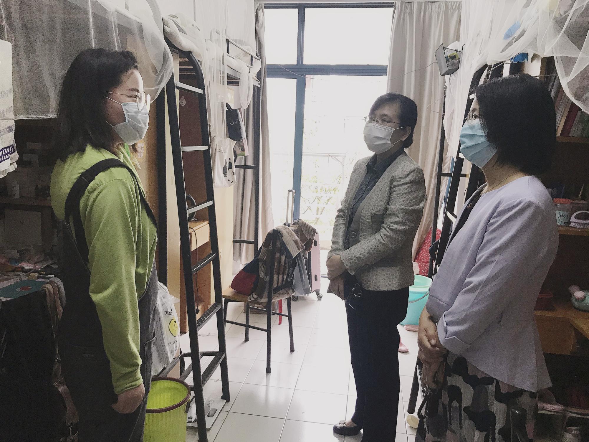 5月6日,公司党委书记童玉玲、副书记徐丽玲一行深入员工寝室走访、看望首批返校研究生。