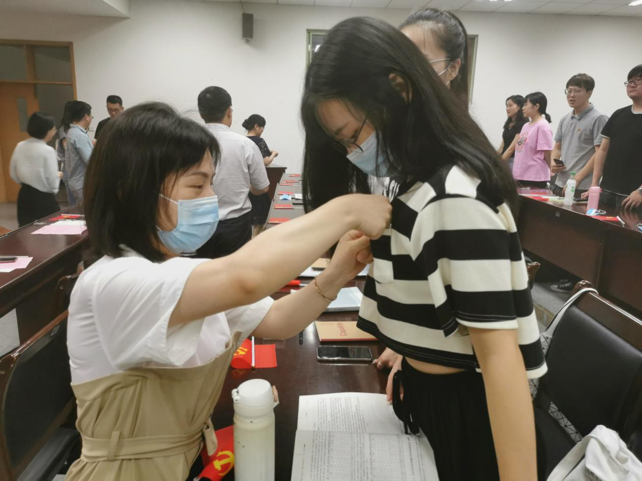 最后,院纪委书记徐丽玲老师对新党员们进行集体廉政教育。徐老师结合老员工党员的实际情况,从政治、组织、工作、生活、廉洁和群众等六个方面,通过几起党员违纪处分的经典案例,要求大家心中常怀戒尺,学会约束自我,时刻保持清醒与坚定,在广老员工群体中充分发挥先锋模范作用。