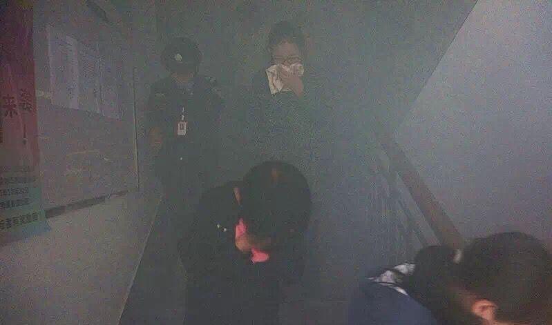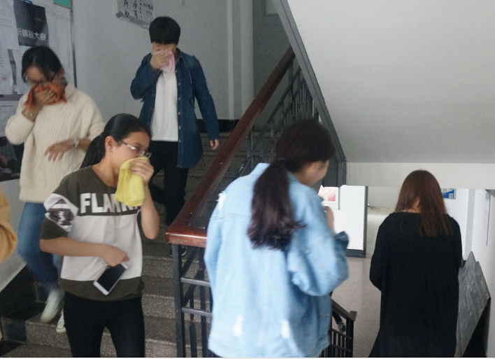 下午1点半,各寝室长先在楼下集合,接受消防安全教育,老师强调了平时要有规避火灾的意识,如出门要关掉电源、禁止使用大功率电器等。而后,老师又讲解了有关火灾现场的应急处置方案及消防疏散过程中的注意事项。下午3点半,紫元公司警卫们准备就绪,烟雾弹被点燃并冒出滚滚浓烟。随着警报声的响起,同学们迅速进入紧急疏散状态,大家用湿毛巾捂住口鼻有序地撤离寝室,楼层指导员在楼梯拐角指明疏散方向。整幢楼都烟雾缭绕,不少同学被呛得直咳嗽。员工到达目的地后,由寝室长确认人数并将结果报告给园区负责人。短短两分多钟,所有同学安全撤离,整个应急演练活动规范有序。同学们临危不乱、组织有序,逃生时没有发生拥挤、踩踏等意外事故。这种仿佛置身于真实火灾现场的经历,让在场的同学们都受益匪浅。最后,同学们在引导人员的的指挥下离开空地,本次演习圆满结束。