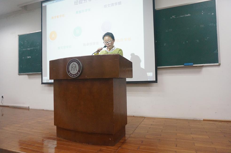 作为优秀考研学子代表,陈芳敏同学与大家畅谈了自己考研过程中的心态,并围绕着“勇气、恒心和自信”为现阶段准备考研的同学们提出了几点建议。黄振华同学则强调了择校的重要性,并从自身出发,反思了自己备考的一些遗憾,对同学们提出了真诚的建议。随后,郑文琪同学从不同的角度为大家分析了专业硕士与学科硕士的区别,并介绍了“1000小时”理论以鼓舞在座同学,此外,她还介绍了自己准备“数三”的经验,提醒同学们备考过程中要夯实基础、整理思路。陈卓恒同学以“考研中的攻与守”为题为大家剖析了考研中容易忽视的几个细节性问题。缪凯燕同学则强调了在准备考研的过程中找到适合自己学习方法的重要性。在这样真诚的“干货”分享中,在座的同学或认真做着笔记,或频频点头以表赞同。在此次动员会最后的互动提问环节中,大家踊跃地就考研的相关事宜进行了提问,六位经验分享者也耐心地一一作答。动员会结束后,大家还加入了考研交流的微信群,以便日后大家在考研方面能有更进一步的交流。