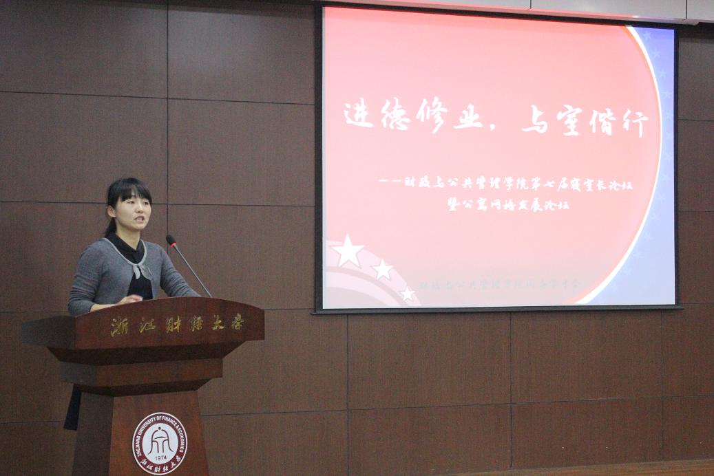 主论坛的最后一项议程是由院员工会主席朱亚慧就日常考勤、科研竞赛、学术社团、成绩分析四个方面进行2015年度学风报告,旨在更好地营造公司良好的学习氛围,加强公司学风建设。从报告中可得出,公司员工考勤率较高,但仍存在一些同学迟到旷课的经历;在科研竞赛方面,员工存在对学术类竞赛不够重视,学术团队缺乏本硕研究团队对接的强度的问题;在学术社团方面,每个学会举办大型规模的活动都较多且特色鲜明;在成绩分析方面,公司员工课程的及格率基本维持在90%以上,但仍有较大提升空间,财政与税收两个专业的优秀率较之其他专业更高。