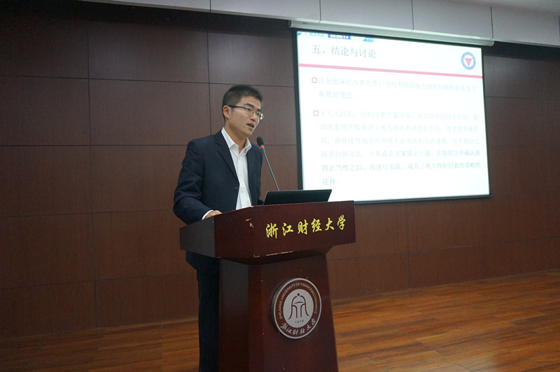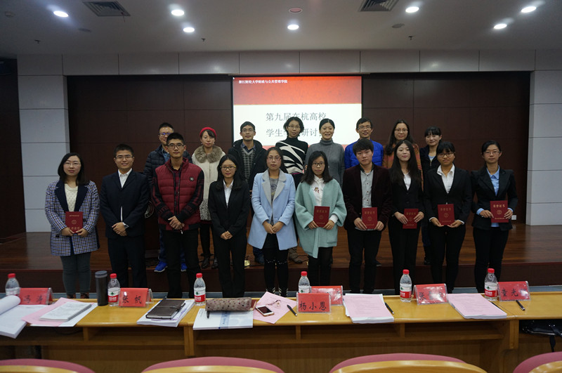 紧接着,本次研讨会六篇脱颖而出的论文作者通过PPT向在场观众进行成果展示,并由评委老师进行点评。其中第三组展示的来自公司金融公司的本科生代表金铭同学的表现异常突出,她带来的《互联网条件下的众筹公益模式探索》论文报告逻辑清晰、PPT简洁明朗,全面仔细地介绍了众筹公益及其产生的原因,比较分析了其优势与现阶段存在的问题。她的展示让人印象深刻,赢得了在座观众的阵阵掌声,公司社保系的唐瑶老师点评时也对她赞不绝口。随后,主持人宣布本届学术研讨会获奖名单,并由公司党总支副书记杨小恩老师为他们颁奖。最后,获奖选手与评委进行合影留念。