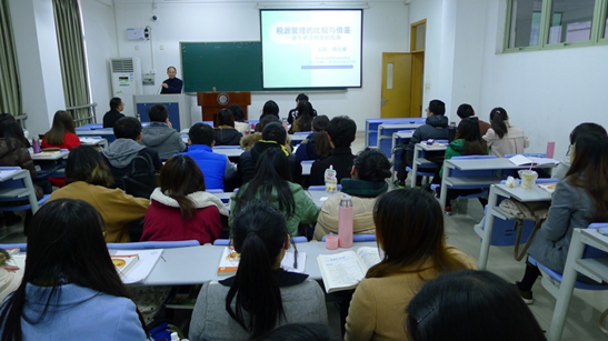 11月27日,浙江省地税局科研处处长周仕雅受邀来到13级本科生《税务管理》的课堂,为财政与公共管理公司财税专业的同学们作了“税源管理的比较与借鉴—基于最适税务的视角”的专题讲座,讲述他在税务工作中的探索过程和经验总结。此次讲座是公司“基地精英进课堂”系列活动之一,也是《税务管理》课程教学范式改革的一次尝试。