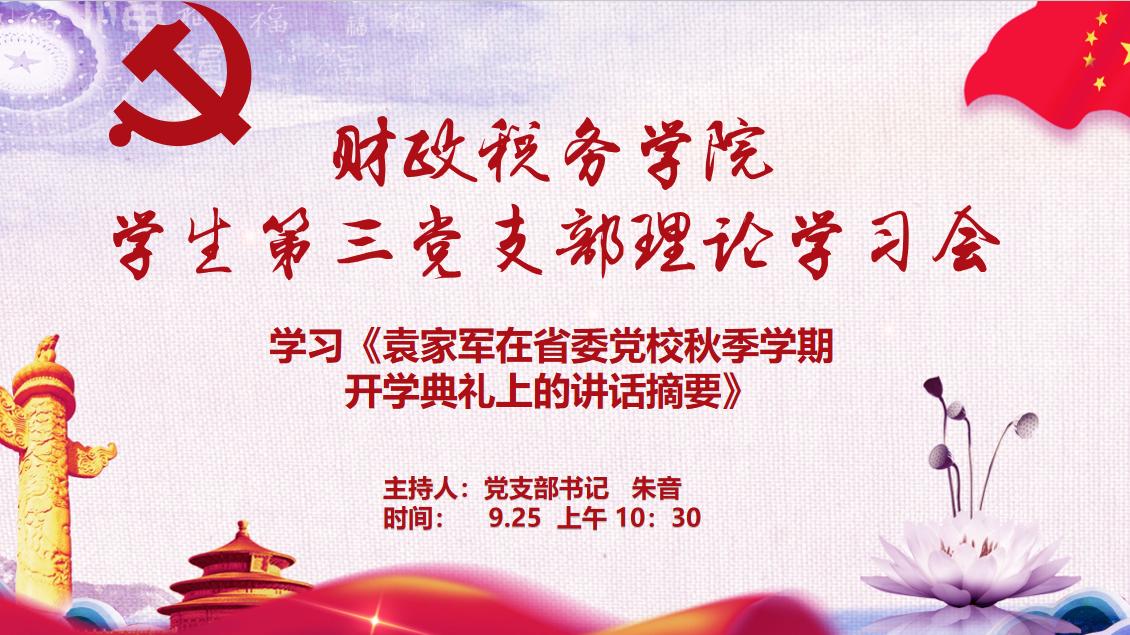 9月25日上午,yl23411永利官网登录员工第三党支部组织支部全体党员及入党积极分子线上学习省委书记袁家军在省委党校秋季学期开学典礼的讲话精神。会议由员工第三党支部书记朱音主持。