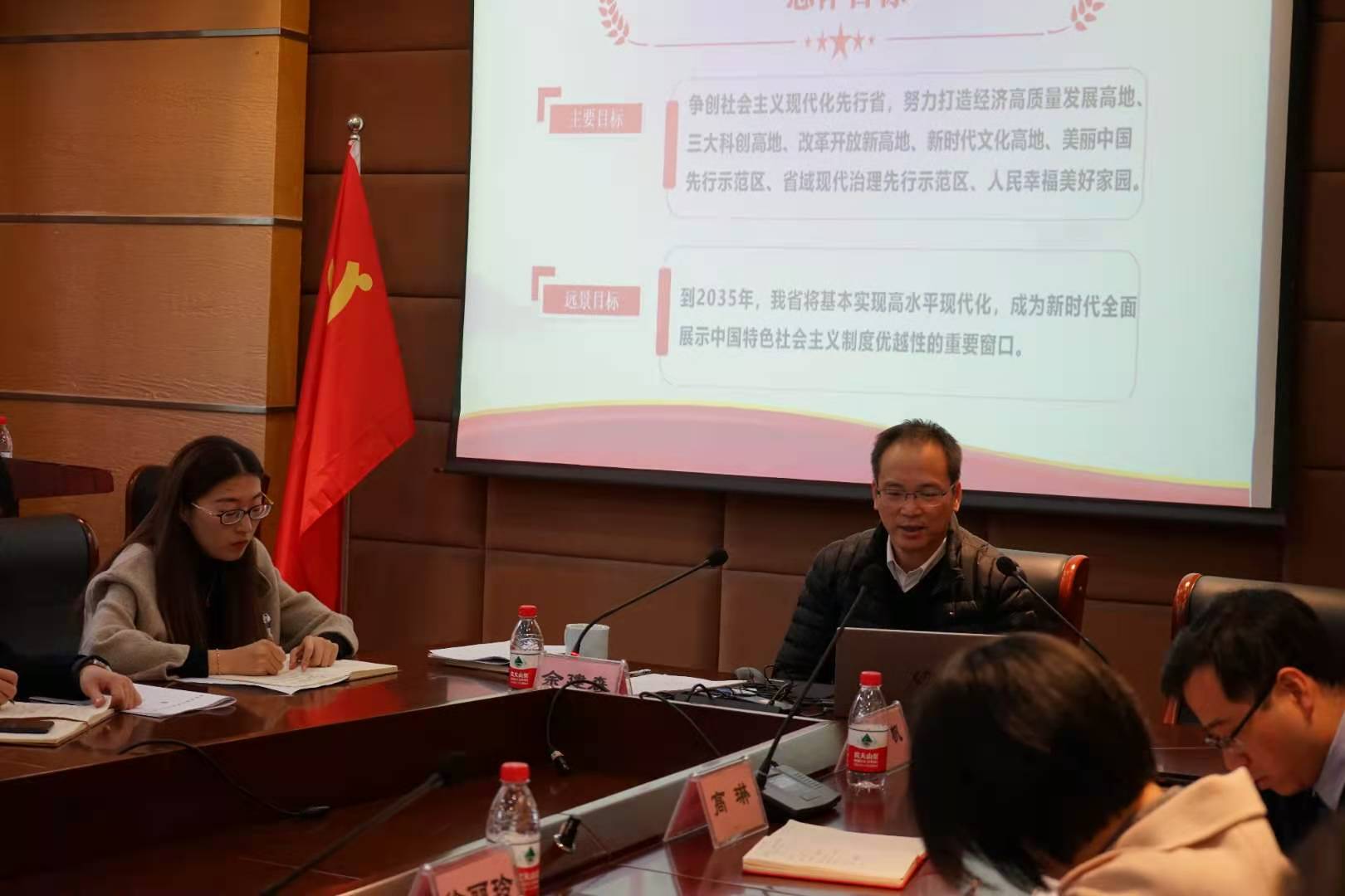 余建森为大家重点介绍了新发展阶段浙江省“五大历史使命”和“十三项战略”,详细解读了全会通过的《关于制定浙江省国民经济和社会发展第十四个五年规划和二〇三五年远景目标建议》,并结合公司学科特点,着重阐述了“建立现代地方财税金融体制”和“加快教育现代化”的建议内容。余建森指出,面对新形势,我们要积极谋划公司学科发展,结合地方需求,不断加强服务地方经济社会发展的能力;面对新形势,要根据新时代教育评价改革的要求,强化立德树人根本任务的意识和能力;面对新要求,为师生创造更好的学习生活环境,不断提升师生满意度,建设幸福浙财。