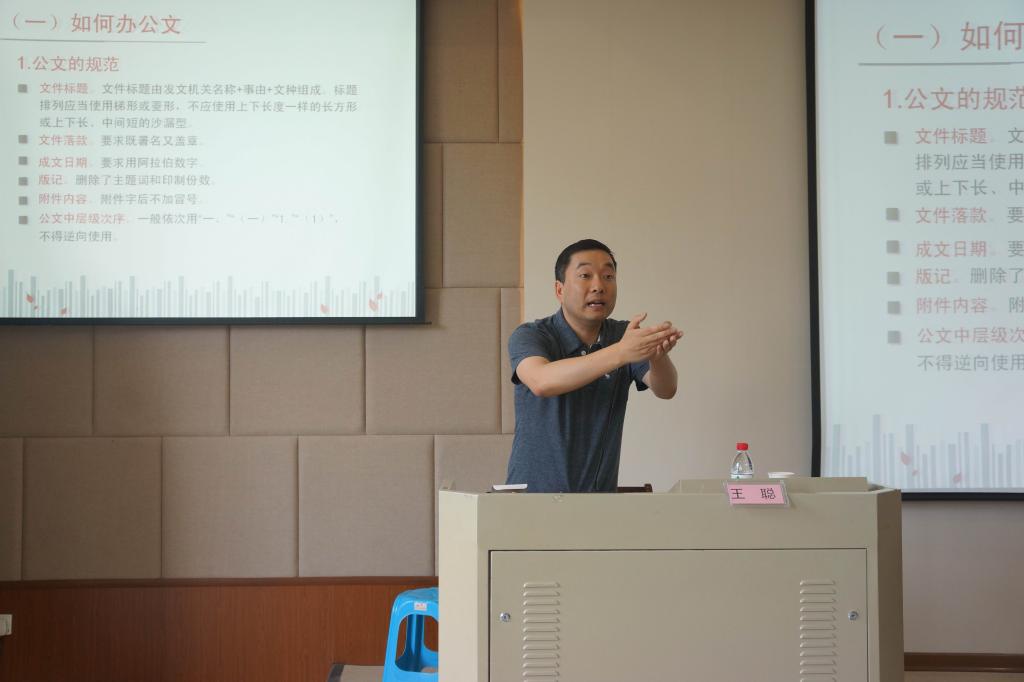 首先,公司党校办副主任王聪给学员作了主题为“行政管理公文写作技法”的第三讲内容,