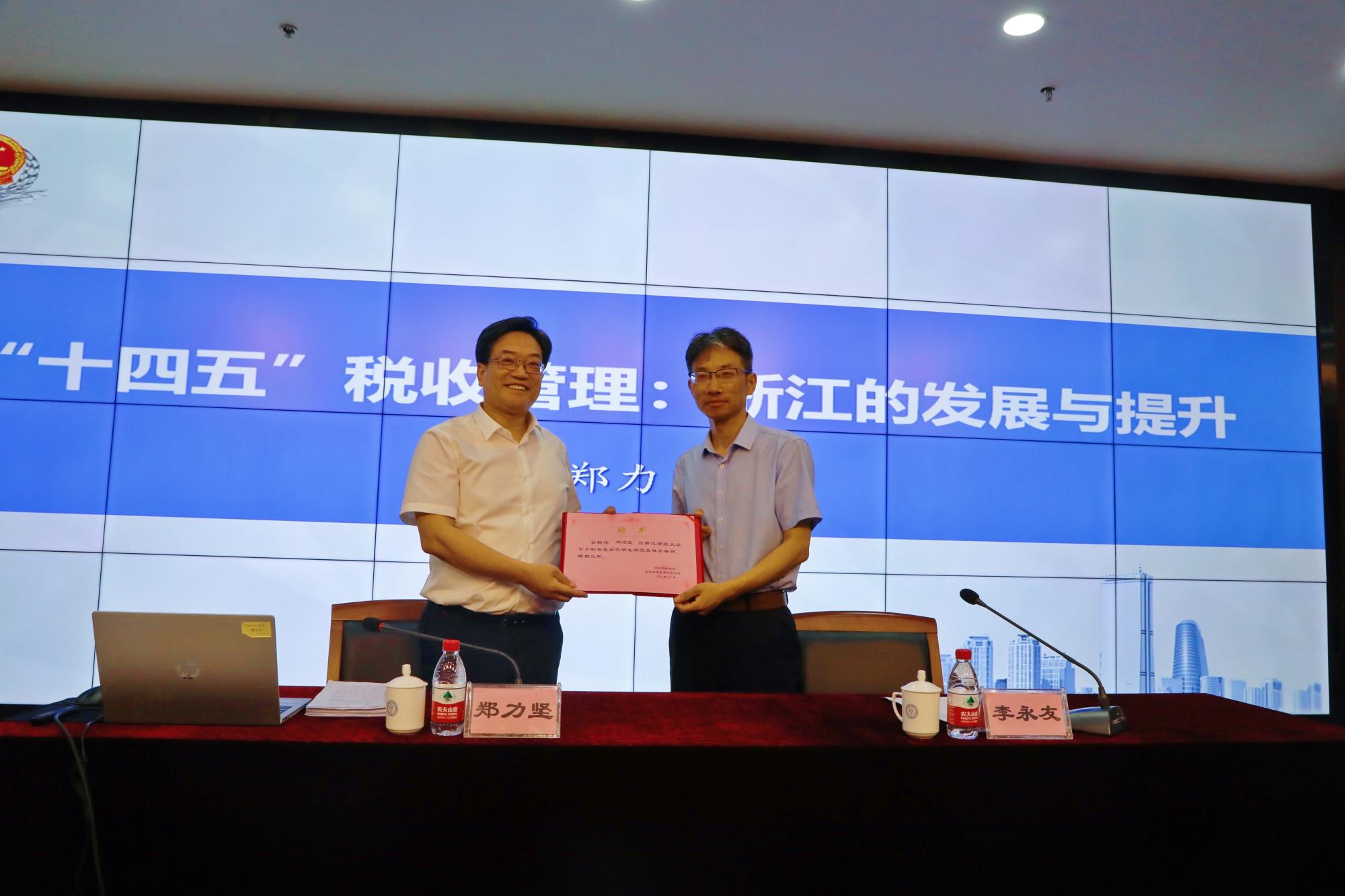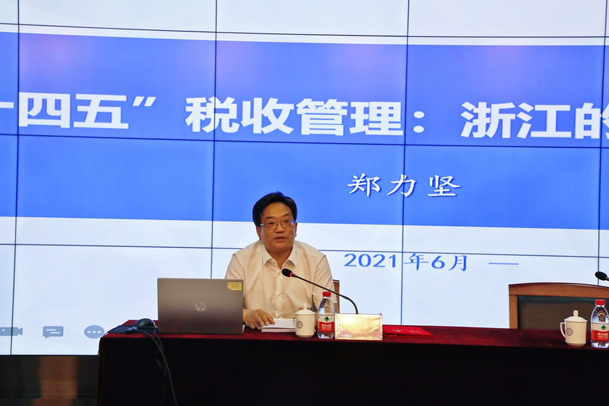 郑力坚局长首先从世情、国情、省情三个层面阐述了他对“十四五”规划的理解。之后从深化税收征管改革、加强对平台经济的税收管理、办税缴费便利化与营商环境、全面推行发票电子化和税收整体智慧与数字化转型五个方面详细报告了浙江省“十四五”时期税收管理的若干重大部署。郑局长的报告深入浅出,为公司师生的科学研究及更好地服务税收事业发展提供了重要指引。