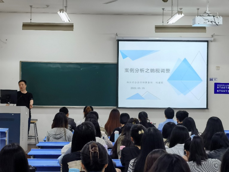为了丰富课堂教学内容,提高专硕员工案例研究能力,5月26日,公司邀请浙江兴合会计师事务所董事长、公司税务专硕社会导师何建军为2021级税务专硕员工作了题为“纳税调整的案例分析”的讲座。yl23411永利官网登录经理司言武出席本次讲座,讲座由税务专硕项目负责人董根泰主持。