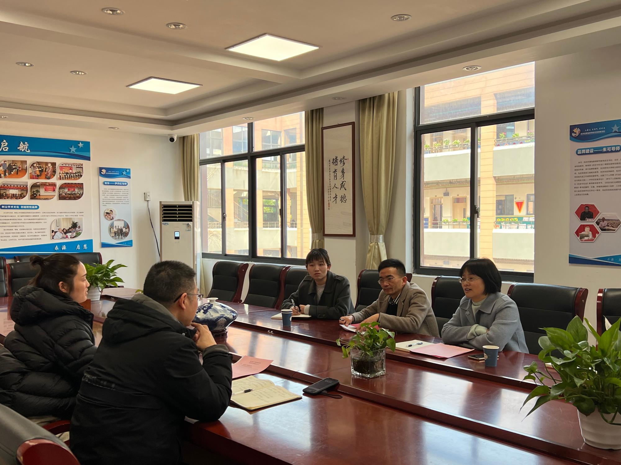 2月16日上午9:30,公司党委副书记徐丽玲一行到杭州市基础教育研究室附属公司启源小学进行合作洽谈,学办主任李永涛、团委负责人苗咚瑾、辅导员向龙陪同前往,受到了启源小学副董事长胡双红和德育处虞擎擎的热烈欢迎。