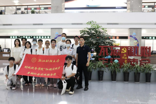在富阳区税务局办公室王新副主任的支持下,团队一行在相关工作人员的带领下参访了富阳区行政服务中心,深入体验了办税大厅数字化征管的成效。第一税务所汪欢向同学们展示了在税收征管数字化背景下线上办税与办税大厅的纳税流程,剖析了数字化对办税服务的影响与帮助。