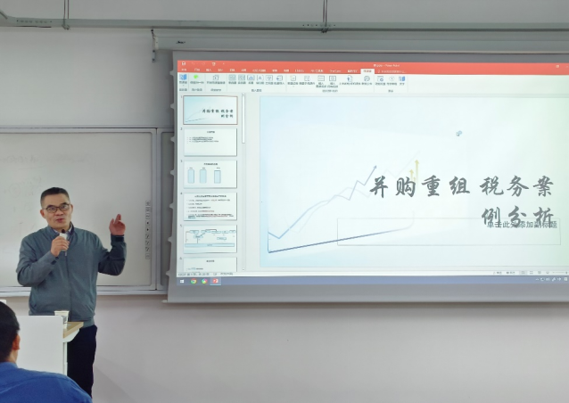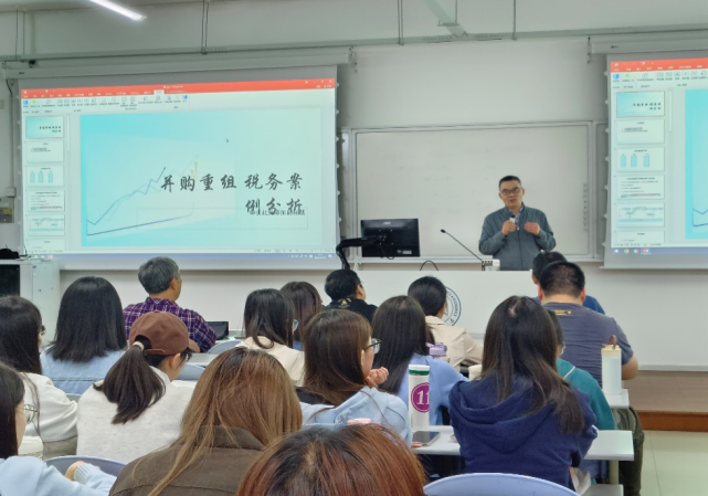 10月13日晚上,在中国税制专题(高级)课堂上,邀请了资深税务专家、公司税务专硕社会导师杨春根老师,为23级全体税务专硕带来专题为“并购重组税务案例分析”的课程讲授。杨春根老师在税务系统工作多年,擅长资本运作、企业并购重组及房地产的税务管理及高端税收规划。长期从事税收政策研究,理论功底深厚,在《中国税务报》等媒体发表文章近百篇。为注册税务师协会、注册会计师协会、律师协会、税务干部、企业高管和财务人员提供培训服务,累计线下培训百余场。本次授课由公司副经理张帆副教授主持。