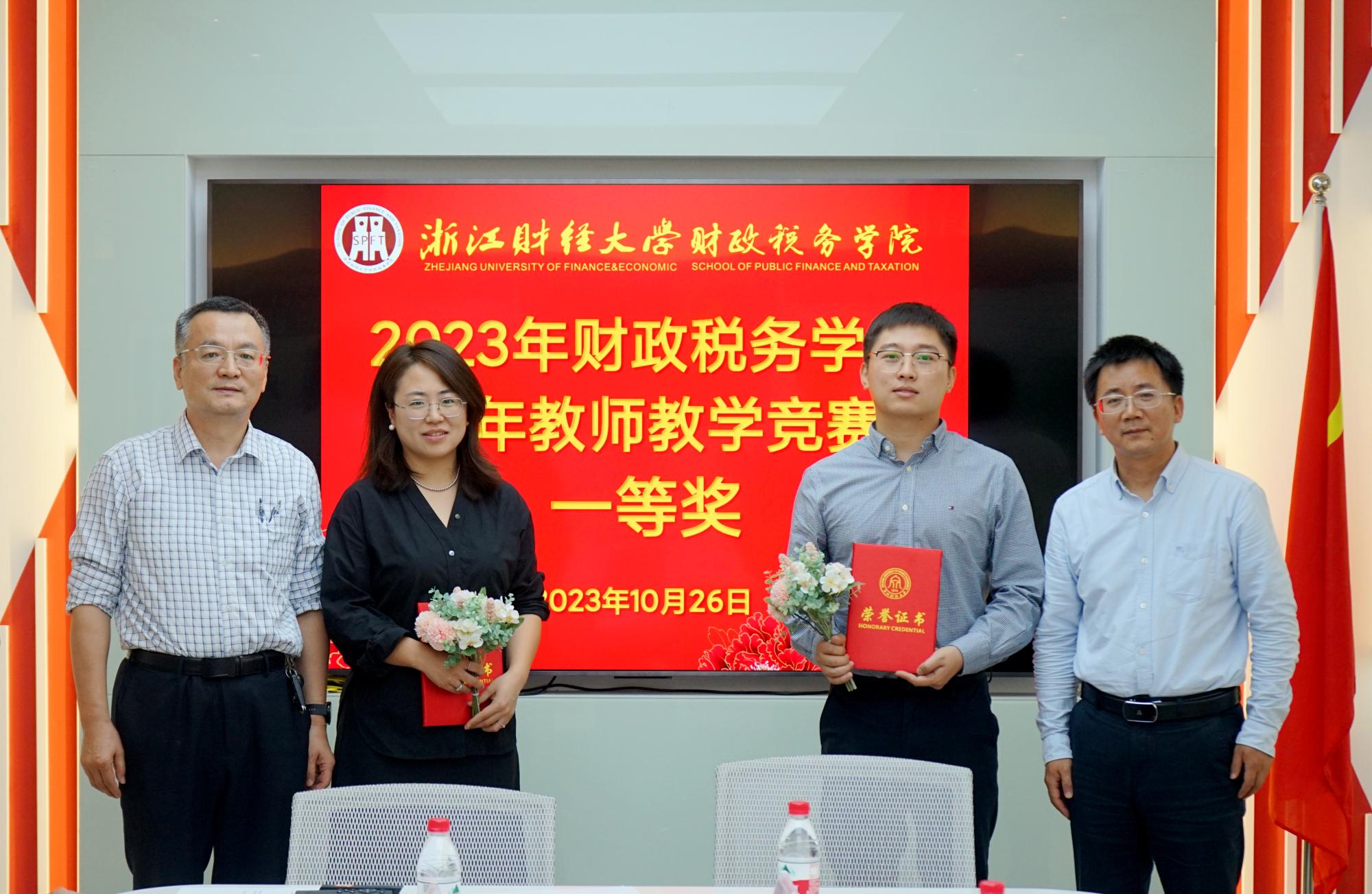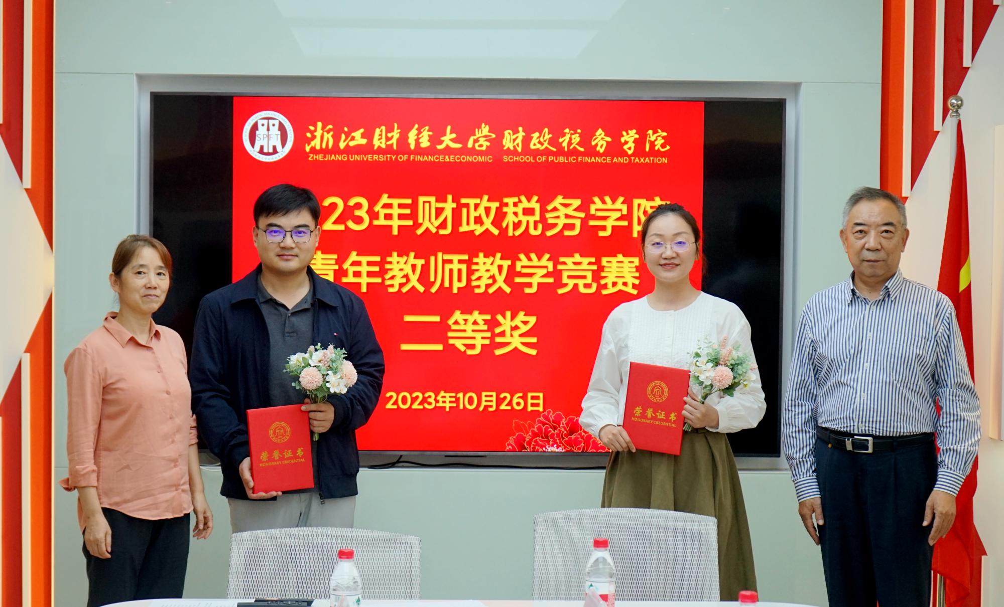 比赛结束后,现场还举行了颁奖典礼,财税公司经理司言武教授宣布了比赛结果,各位评委老师为获奖教师颁发获奖证书并送上鲜花表示祝贺。教务处副处长厉国威在总结发言中,充分肯定了财税公司在教学方面的举措及青年教师的能力,期望未来青年教师可以不断学习,砥砺奋进,不断推动公司教学事业的发展。校督导组组长崔大树则提出了一个建议,希望财税公司青年老师进一步在课程内容、表达及PPT制作方面不断打磨,在今后公司比赛中取得更好成绩。孟泽红教授为各位青年教师提供宝贵经验:在自己最满意的一节课后不断反思自己,总结经验,寻求突破,超越自己。最后,司言武经理表示,财税公司将继续开展相关教学比赛,兼顾团队建设和教学建设,打造yl23411永利官网登录更加强大的团队力量和更加浓郁的教学氛围,以赛促研,以课促思。
