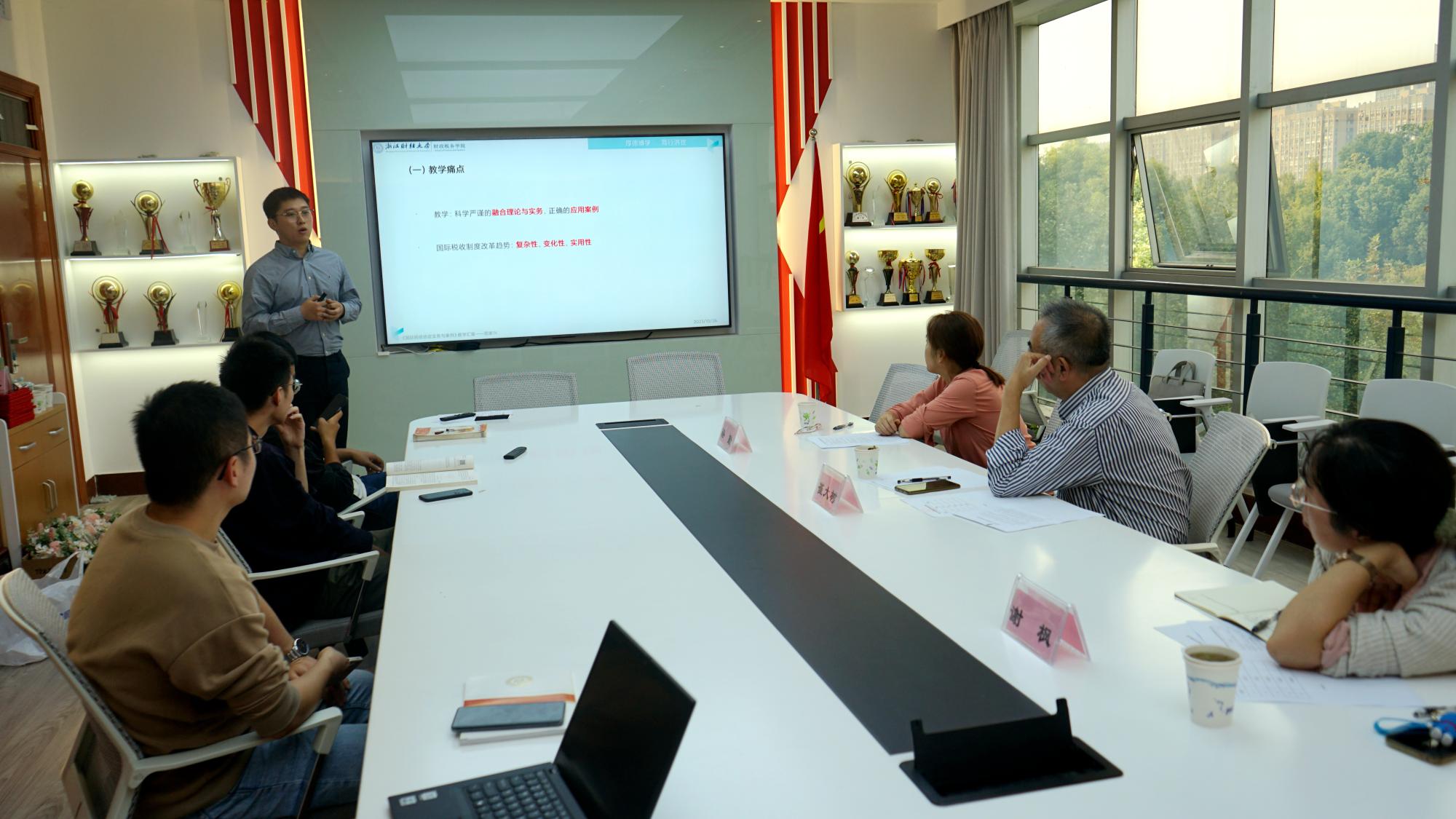 本次大赛,青年教师们分为两组进行比拼。在比赛中,青年教师们教态自然、声音洪亮、激情四溢,概念表述准确、清晰,教学内容连贯、新颖,分别从《消费税》、《税务违法行为及法律责任》、《<国际税收协定实务与案例>教学汇报》、《外部性的经济分析》、《中国税制》等课程主题进行自己的教学风采展示,无不展现着过硬的专业素养与饱满的教学热情。评委们充分肯定青年教师优秀的表现,并从教学方式、教学内容、教学进度及参赛要点等方面提出了可行性建议及更高的要求,帮助青年教师们提高其专业素质及能力。