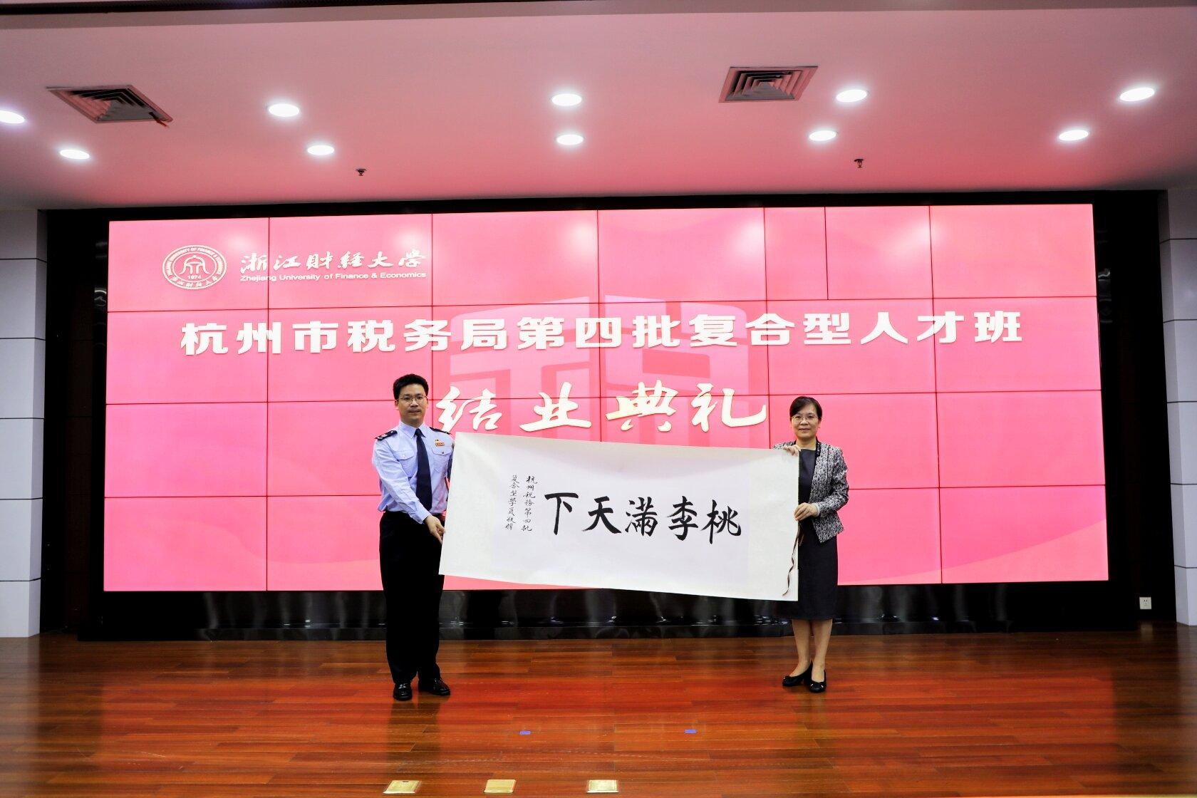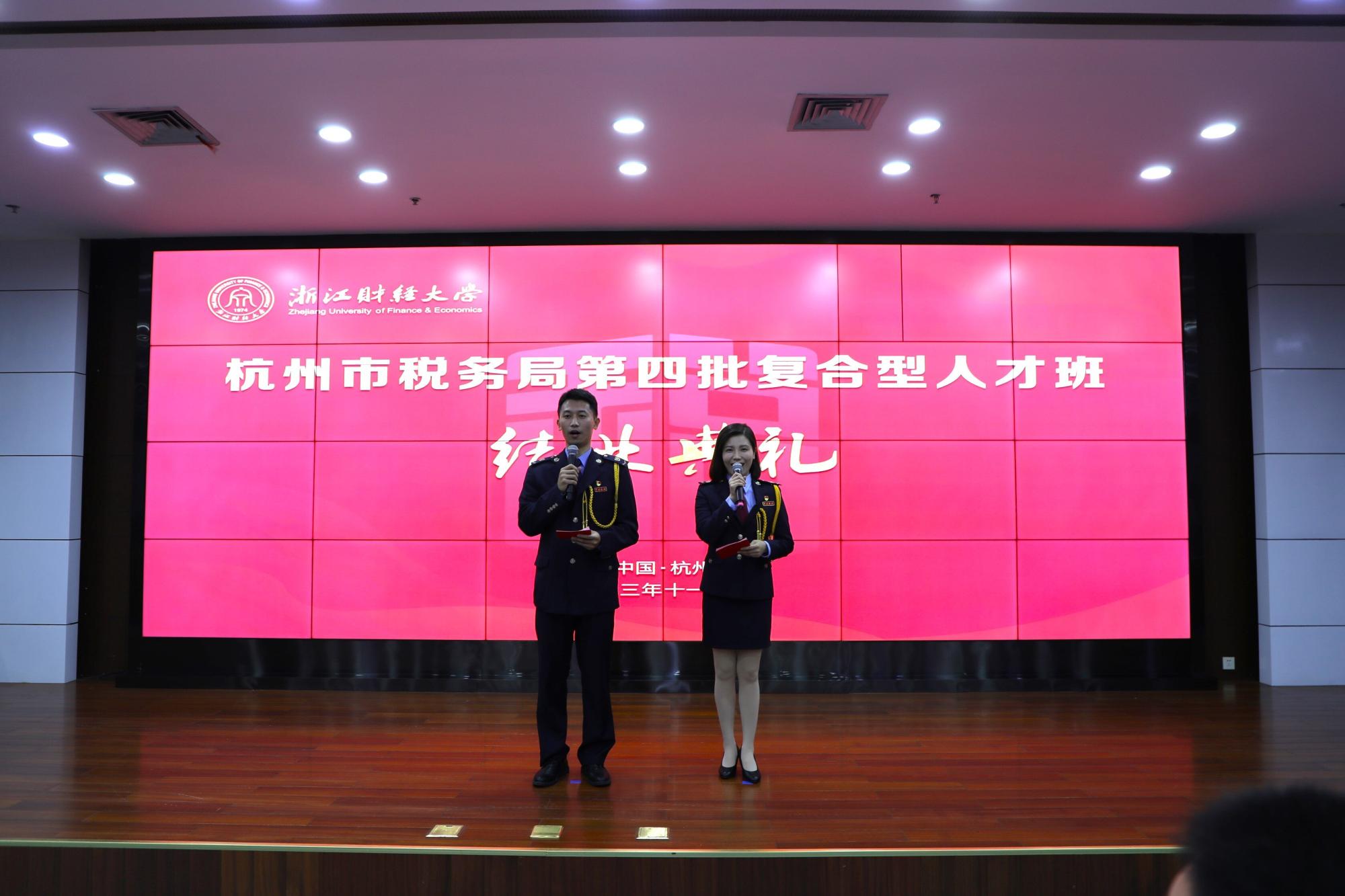 典礼在对到场的领导和来宾介绍中拉开序幕。在回顾完三年培养历程之后,yl23411永利官网登录党委委员、副董事长董进才发表了致辞,对为复合型人才培养班倾注心血的杭州市税务局的各位领导们表达了最诚挚的感谢,对学员们的顺利结业表示热烈的祝贺,同时总结了此次人才培养的模式、过程和取得的良好成效。