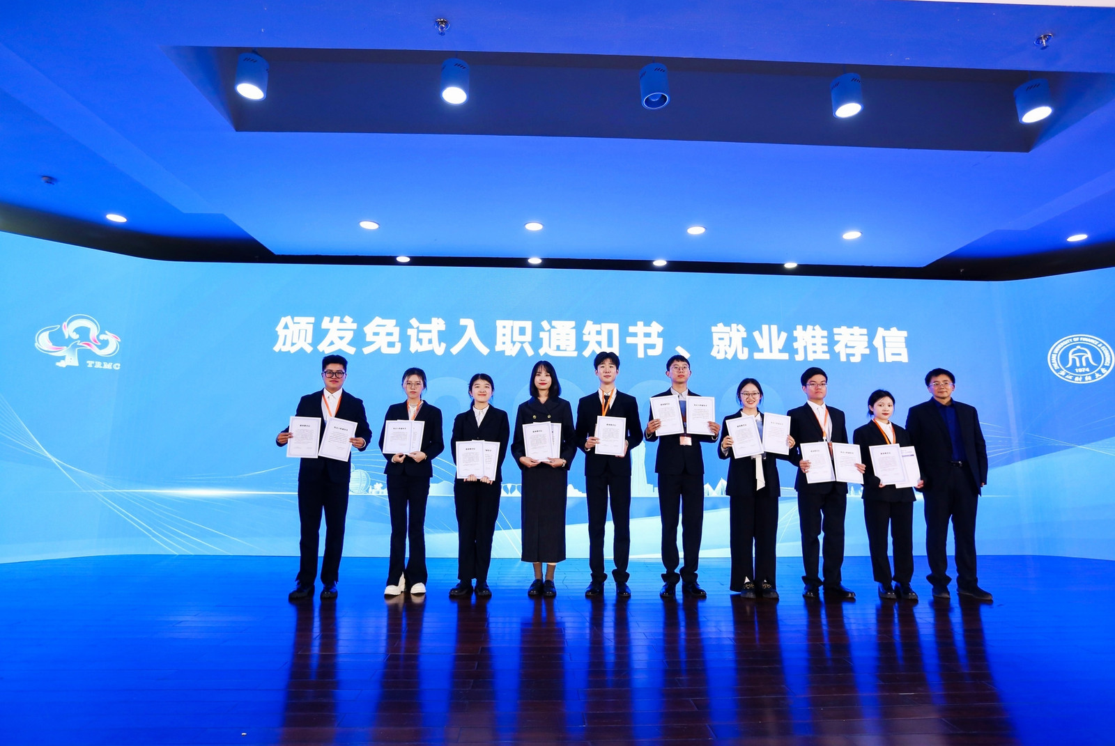 浙江省注册税务师协会行业党委常务副书记、会长邢幼平宣读了免试入职文件并颁发证书。公司经理司言武代表大赛组委会为参赛选手代表颁发就业推荐信。