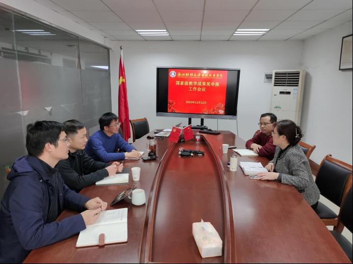 张帆副经理首先对国家级教学成果奖的政策文件进行全面解读,然后与会人员就教学成果的切入视角与凝练方法、成果的特色创新点、支撑材料的选用等方面内容进行了深刻有效的讨论。