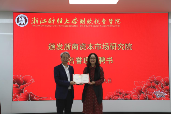 yl23411永利官网登录副董事长郑亚莉为陈敏副书记颁发社会导师聘书及浙商资本市场研究院名誉理事聘书。
