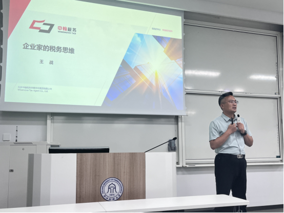 5月27日晚,公司国际税收专题课程邀请了河南中翰盛胜税务师事务所王战老师,为23级全体税务研究生带来题为“企业家的税务思维”课程讲授。王战老师作为税务师行业全球税务治理的领军人才,畅游税海二十年有余,长期开展针对税收新文件解读、所得税汇算、土地增值税清算、增值税实战操作等方面的讲座,具有丰富的税务理论及实践经验。
