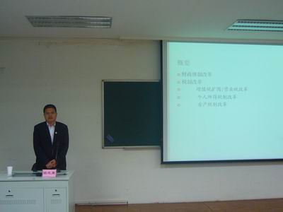 2011年4月7日14点30分,中国社会科公司财政与贸易经济研究所研究员、财政研究室主任杨志勇老师在公司楼106为公司师生作了题为“未来中国财政政策猜想”的精彩讲座,讲座由公司副经理张雷宝教授主持。