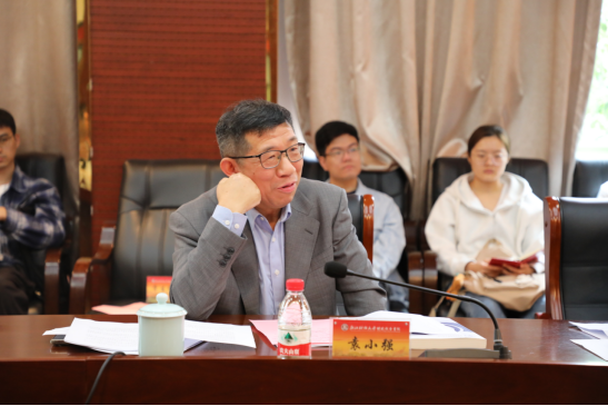 税务硕士负责人董根泰向专家组汇报了学位点在评估期的建设情况,他从培养目标与标准、基本条件、人才培养、服务贡献等四个方面,详细介绍了学位点在评估期的发展举措与成效,并客观分析了学位点建设尚存在的不足与面临的挑战。
