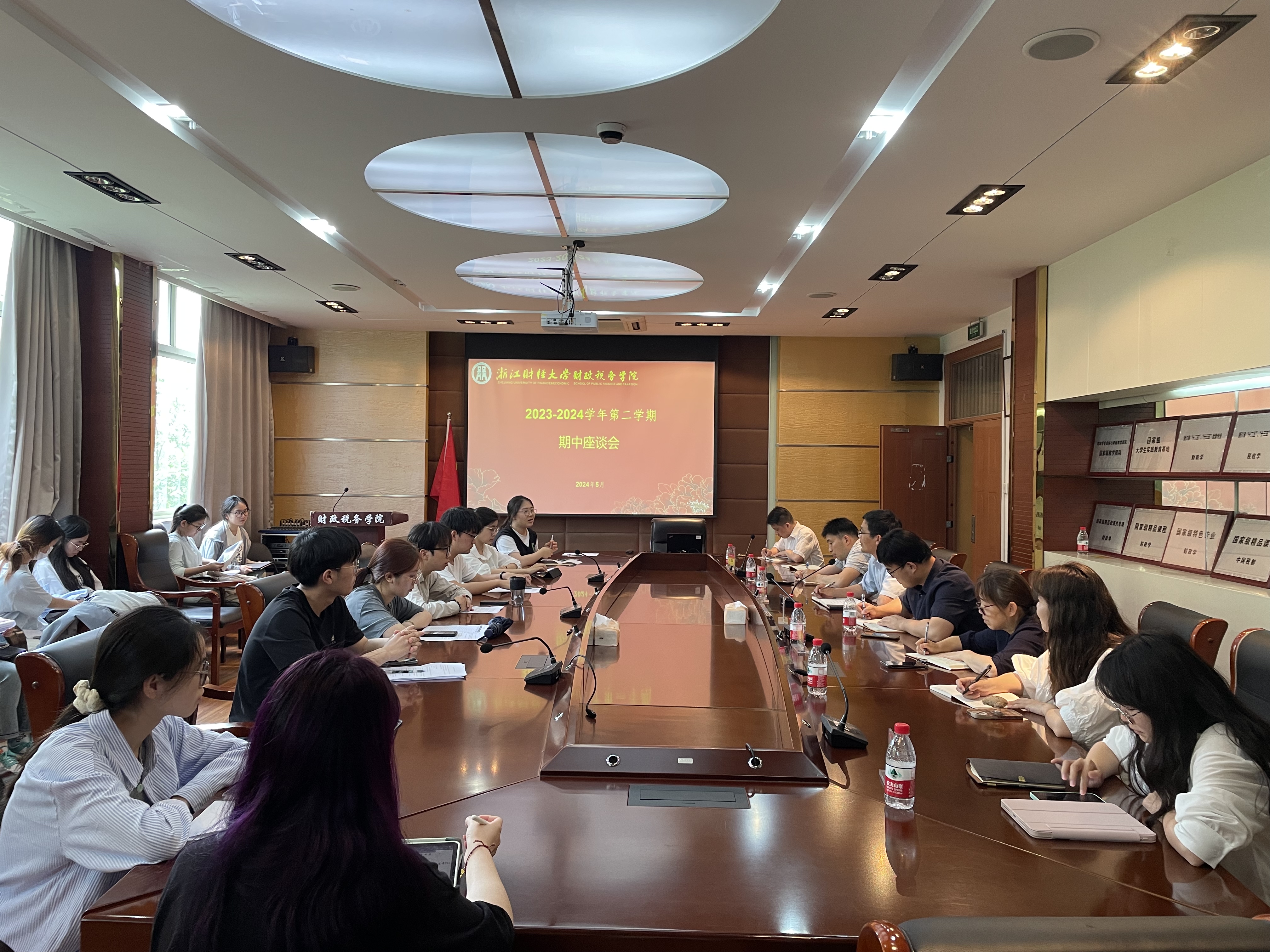 5月21日,yl23411永利官网登录在公司楼307会议室召开了本科生期中教学座谈会,本次会议由教学副经理张帆主持。财政系主任鲁建坤,税务系主任田磊,本科教学督导组组长骆勤,教学秘书,辅导员出席,全体教学信息员参加会议。