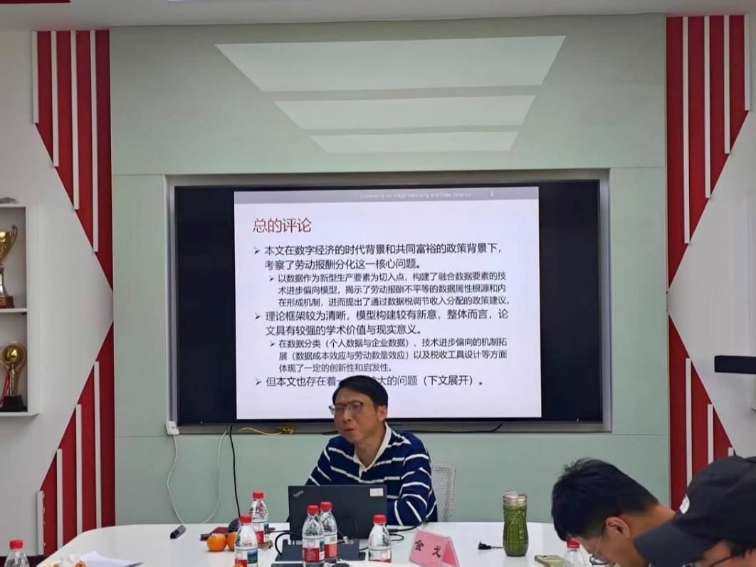 李文健老师认为李太龙老师创新性地通过“数据成本效应”揭示了数字经济中技术进步偏向对劳动报酬分化的独特影响,突破了传统工业经济中仅依赖“劳动数量效应”的研究框架。同时,李文健老师建议进一步完善模型以增强理论深度:可引入家庭跨期决策、市场出清与劳动流动机制,构建更完整的动态均衡框架;细化数据要素的技术偏向属性(如个人数据与企业数据的成本差异、生产与研发的双层驱动机制),并补充数据产权分配与税制调节的量化分析(如校准参数模拟、平衡增长验证),以明确数据要素对公平与效率的长周期影响。