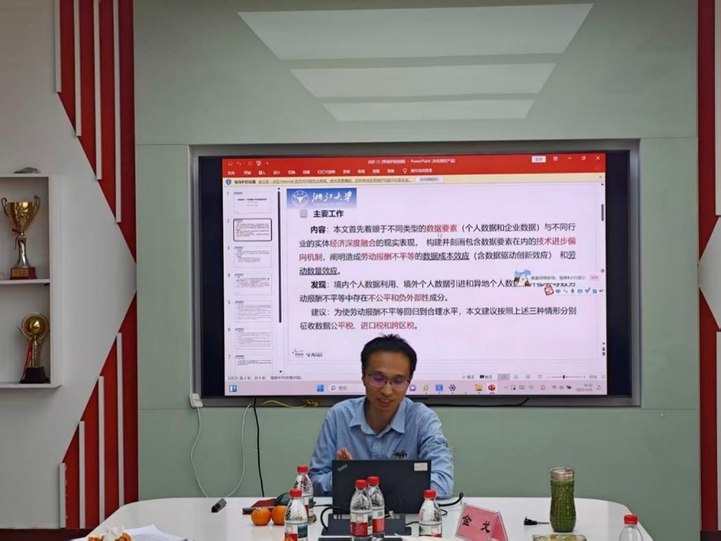 金戈老师对李太龙老师的创新性研究表示高度评价。同时,金戈老师建议进一步完善模型,以更全面地反映经济现实。具体而言,模型可以考虑引入家庭跨期决策、市场出清和劳动流动机制,以增强其动态均衡特性。此外,建议分析劳动技能与数据属性之间的互补关系,并通过数值模拟来验证数据税对技能溢价的长期调节效果。
