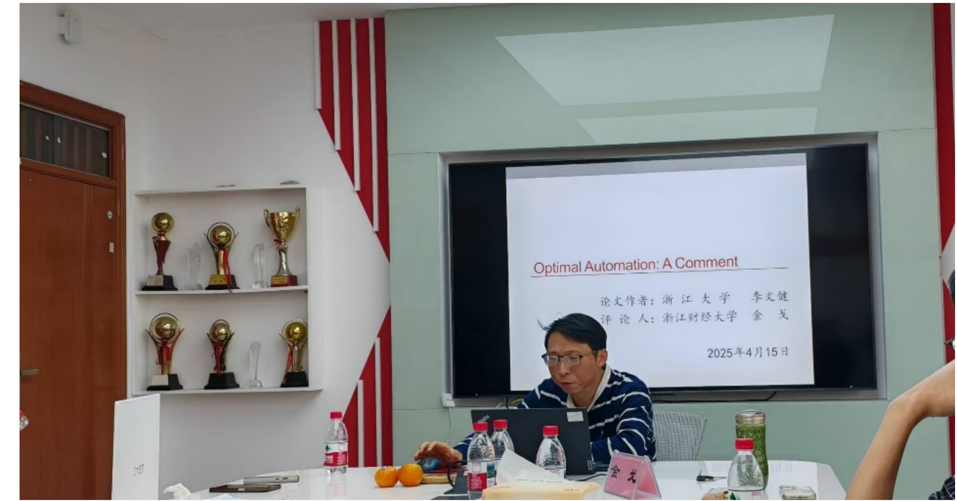 2025年4月15日下午,财税基础理论与政策双周论坛第2期在yl23411永利官网登录402室举行,浙江大学李文健老师进行了题为“Optimal Automation”的学术讲座。