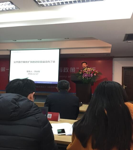 李永友教授受邀在此次论坛上发表了题为《公共医疗服务扩张的边际受益流向》的主题演讲,并参加了随后举行的圆桌论坛,就公共经济学的理论创新和现实问题发表了自己的看法。随同李永友教授一道参会的还有公司财政学科研究生马萧红、俞家杉、胡玲慧等。