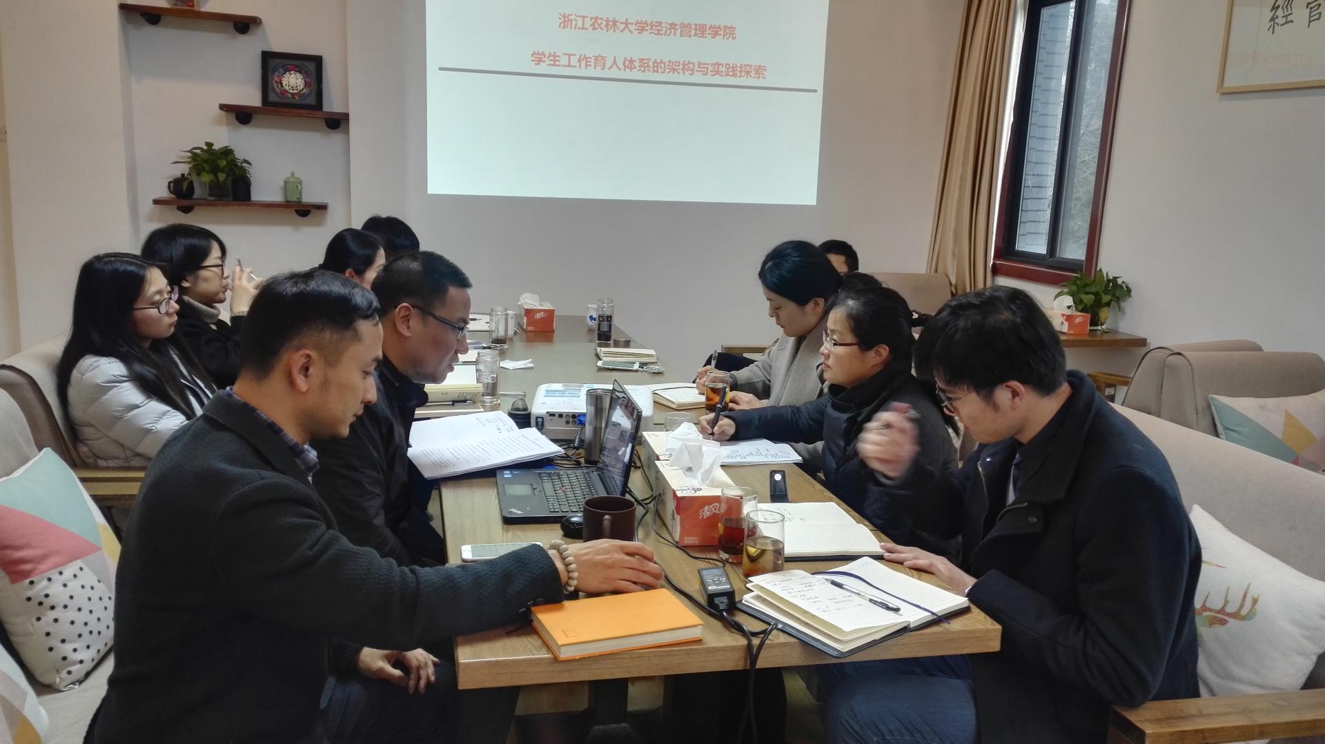 在交流学习会上,浙江农林大学经济管理公司分管员工工作的党委副书记周凯老师介绍了经济管理公司员工思政工作的基本情况,包括公司党建工作,“缘”文化建设、心理辅导工作开展情况等。学办主任陈审声分享了公司文明寝室建设及园区工作经验,主要包括“绿、蓝、白”牌寝室评比、寝室卫生管理制度等。团委书记王园园详细介绍了公司团委员工会工作概况,重点阐述了公司员工会五大中心工作开展情况及取得的成果。随后,双方就辅导员职业发展、公司思政工作开展情况、团学工作思路、创业工作推进办法、学科竞赛指导情况等方面进行了深入的交流。会后,周凯副书记还带领大家参观了经济管理公司的党员之家、学创办公室和研究生自习室。