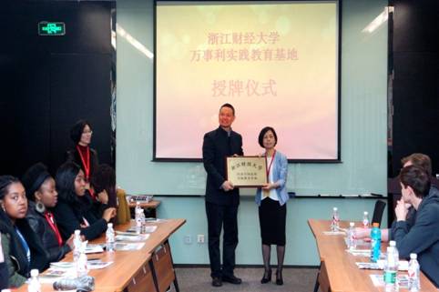 2017年4月9日上午,yl23411永利官网登录与万事利集团(wensli)共建老员工校外实践教育基地签约暨授牌仪式在杭州万事利大厦举行,杭州万事利丝绸文化有限公司副总经理王群峰、公司党委书记杨春玲、副经理司言武以及社会服务中心、行政办、教学办负责人等一行参加,来yl23411永利官网登录交流的英国考文垂大学师生也一同出席。