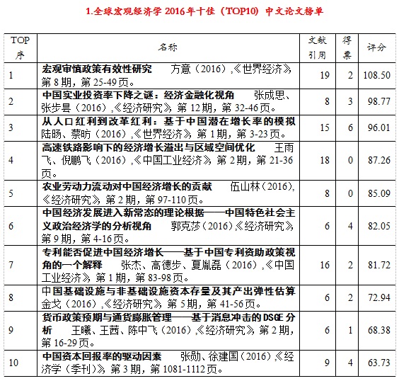 近日,由公司金戈教授独立撰写的论文《中国基础设施与非基础设施资本存量及其产出弹性估算》(发表于《经济研究》2016年第5期)入选《世界经济年鉴2017》“全球宏观经济学2016年十佳中文论文(TOP10)”。
