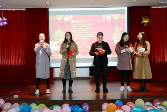 联欢会伊始,财政系张朝阳、童幼雏、刘丹老师带来一组歌曲串烧,欢快的歌声瞬间点燃气氛;刘初旺老师的《十送同事过新年》、鲁建坤老师的《从头再来》赢得阵阵掌声。《击鼓传花》、《不是你以为的萝卜蹲》、《你比划我来猜》等小游戏穿插其中,将节日的气氛一次又一次推向高潮。短暂的游戏过后,由行政办公室五位老师带来多种语言的歌曲串烧,展示了公司教职工的多才多艺。王绪强老师献唱歌曲《鸿雁》,浑厚磁性的嗓音在室内缓缓回荡。联欢会的压轴节目是由税务系带来的合唱《明天会更好》,婉转的歌声展示了公司教师对公司未来发展的美好憧憬。最后,联欢会在激动人心的抽奖中落下圆满的帷幕。