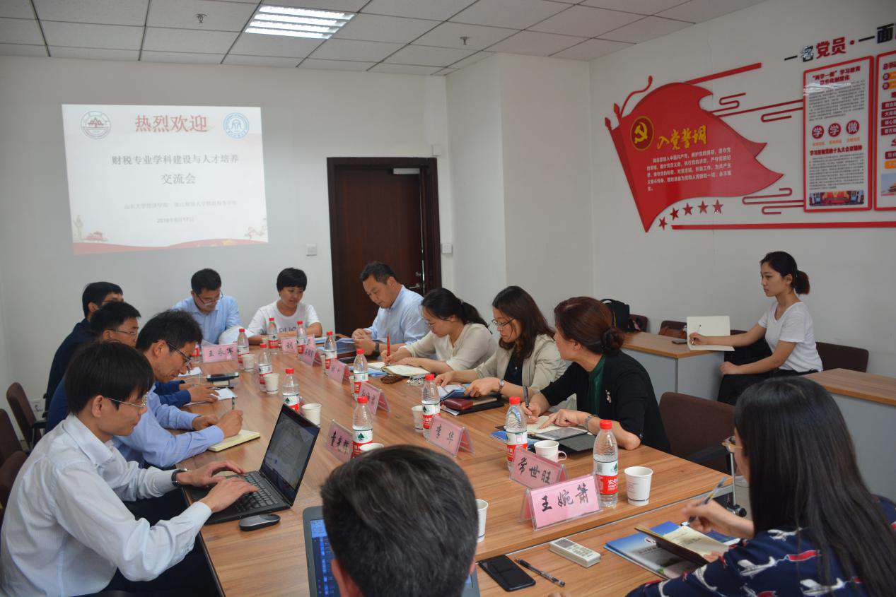 随后,山东大学经济公司石绍宾副经理重点就教材建设、本硕层面的国际化交流与合作、人工智能、大数据技术相关知识在财政学课程设置中的引入等情况进行了说明。财政系主任李华就人才培养目标定位、教材建设和团队国际化等方面做了介绍。党委副书记林竹介绍了员工培养及其举办学科大赛的做法、经验及下一步的推进举措。座谈会上,双方就彼此感兴趣的问题进行了热烈、友好的交流与探讨。