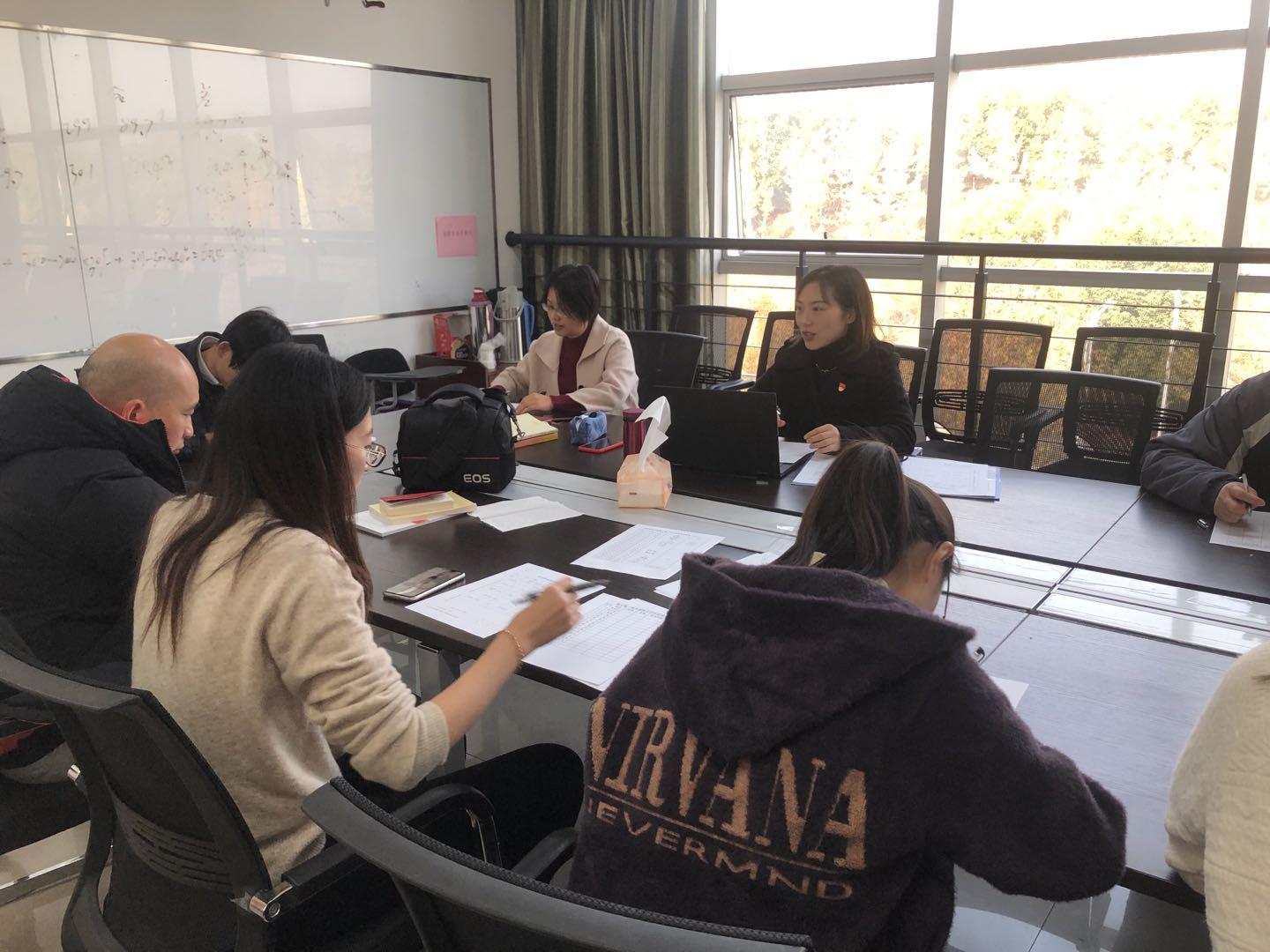在童书记介绍党员民主评议的内容及程序后,支部全体党员结合实际情况,填写个人自评表,根据每位党员的政治态度及工作表现进行互评打分,开展批评与自我批评。随后,党员们对党支部的工作进行了评议,认为当前党支部仍存在以下问题与不足:一是需要注入新鲜血液,发展新党员;二是需要“走出去”,以更加丰富的形式开展支部活动。