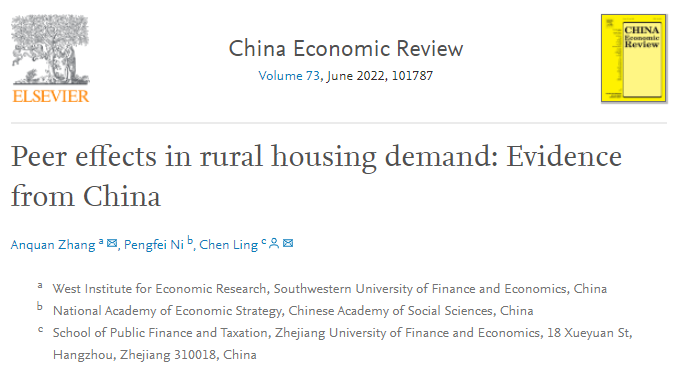 近日,yl23411永利官网登录财税公司凌晨教授,与西南财经大学西部经济研究院张安全副教授、中国社会科公司财经战略研究院倪鹏飞研究员合作的论文《Peer effects in rural housing demand: Evidence from China》在国际期刊ChinaEconomicReview正式发表。
