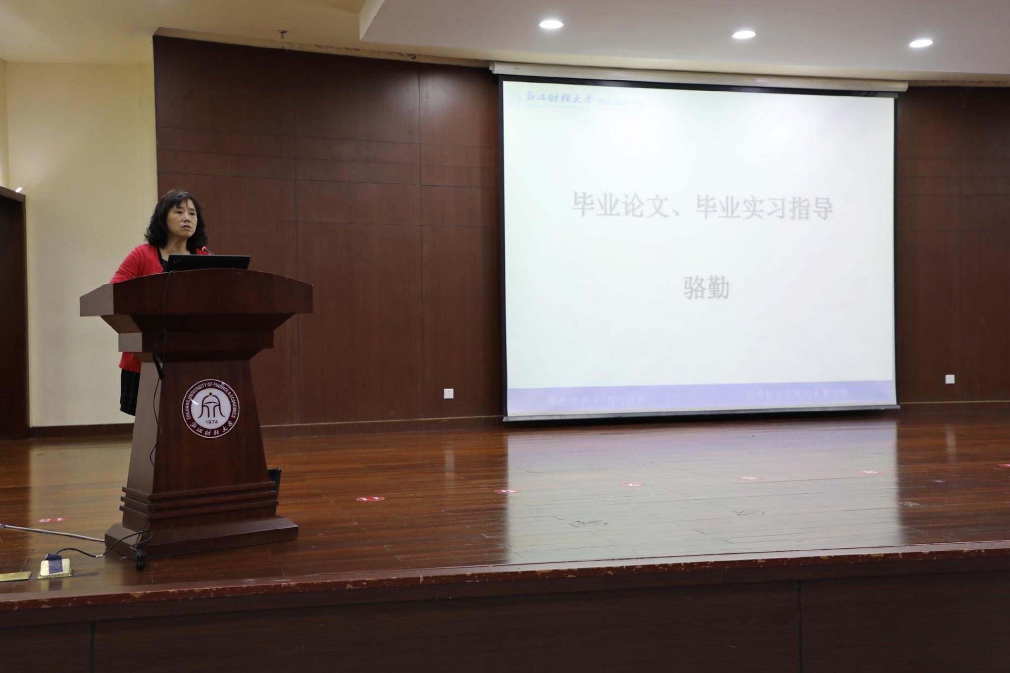 随后,骆勤教授就毕业论文写作的注意事项进行了详细深入的指导。从选题、开题报告、开题答辩、论文写作到论文答辩等多个方面进行说明。骆老师举了大量的反例,提醒同学们不要犯类似的错误,为自己的毕业工作减少不必要的麻烦。