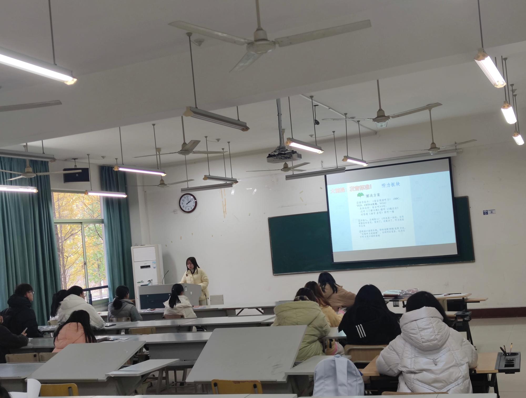 12月2日下午2:00,公司于公司楼104举行了红鹄益站之大学英语四级培训活动。2020级吴锦婷作为此次活动主讲人向大家分享英语技能提升相关经验。