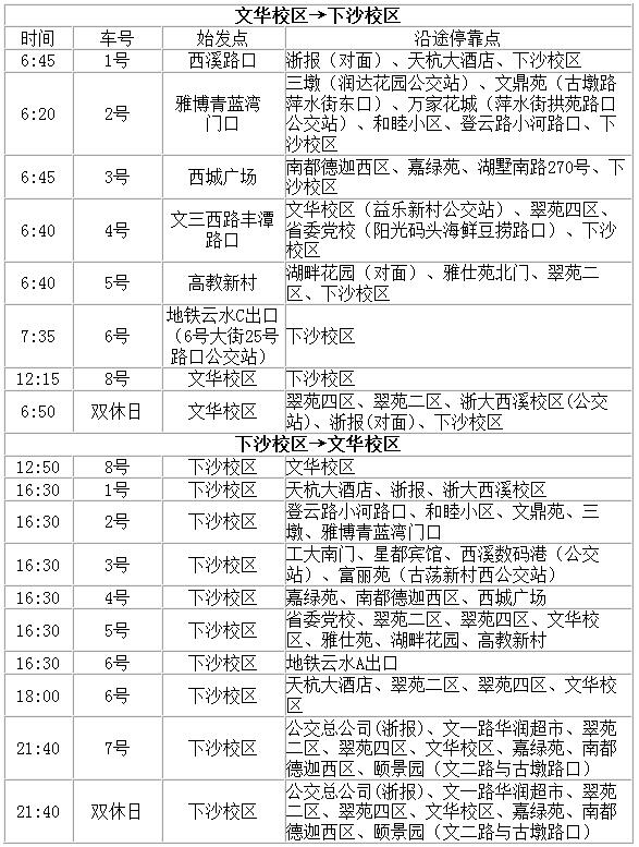 2019-2020学年第二学期班车时刻表 (2020年4月26日起执行)